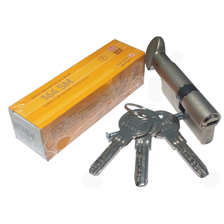 سیلندر قفل کالی کامپیوتری «دسته دار»، مدل 164SM، ساخت Kalekilit کشور ترکیه می باشد. این سیلندر دارای دستگیره داخل جهت قفل کردن آسان بدون کلید بوده و برای آپارتمان بسیار ایمن می باشد. سیلندر این قفل دارای 6 پین بوده و امنیت بسیار بالایی را در مقابل بازگشایی و سرقت تامین می نماید. طول این سیلندر 7 سانتی متر بوده و دارای 3 کلید دسته گرد اورجینال می باشد و برای درب های ضد سرقت و چوبی مناسب می باشد دقت شود که این سیلندر از طرف بیرون با کلید کامپیوتری قفل و باز شده و از طرف داخل بوسیله دسته باز و بسته می شود و با مدل های سوئیچی مشابه اشتباه نشود