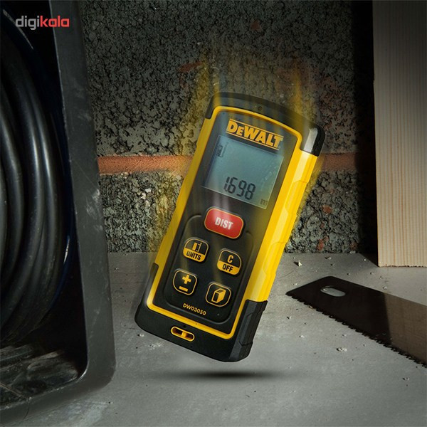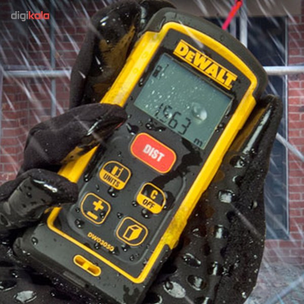 متر لیزری «DW03050» دستگاهی برای اندازهگیری موارد گوناگون است. این دستگاه مدل پیشرفتهی مترهای دستی محسوب میشود. کیفیت و دقت بسیار بالایی در ساخت این محصول به کار رفته و از ابعاد و وزن مناسبی برخوردار است. مقاومت بالای دستگاه در برابر آسیبهای محیطی مختلف، میزان استقبال از آن را افزایش داده است. در محیطهای مختلف صنعتی و همچنین اماکنی با نور کم هم میتوانید بهراحتی از این مدل استفاده کنید. DW03050 یک متر لیزری تولید شرکت «دیوالت» (DeWalt) است. این محصول انرژی موردنیاز خود را از دو باتری نیمقلمی سایز AAA دریافت میکند. با این دستگاه میتوانید تا طول 50 متر را با دقت 1.5 میلیمتر بر متر اندازهگیری کند. یعنی در هر متر، فقط 1.5 میلیمتر احتمال خطا وجود دارد. همچنین قابلیت محاسبهی مساحت، حجم و ارتفاع (بهصورت غیرمستقیم و با استفاده از قانون فیثاغورس) با این دستگاه امکانپذیر است. همواره در حافظهی داخلی دستگاه، 5 نتیجهی آخر اندازهگیری (یا محاسبه) شده ذخیره میشود و در دسترس شما قرار میگیرد. با توجه به نور پسزمینهی صفحهنمایش، بهآسانی میتوانید هنگام شب و در محیطهای کمنور از این ابزار استفاده کنید و اعداد نمایش دادهشده را بخوانید و ثبت کنید. همچنین مقاومت بالای این دستگاه در برابر ضربه، فشار و رطوبت بالا درخورتوجه است. این محصول علامت حفاظت بینالمللی IP65 دارد. IP65 گویای مقاومت مدل DW03050 در برابر ورود گردوغبار و مایعات به دستگاه است. این دستگاه مقاومت کاملی در برابر ورود گردوغبار دارد و ازهرجهت از ورود آب و آثار مخرب آن بر عملکرد دستگاه جلوگیری شده است.