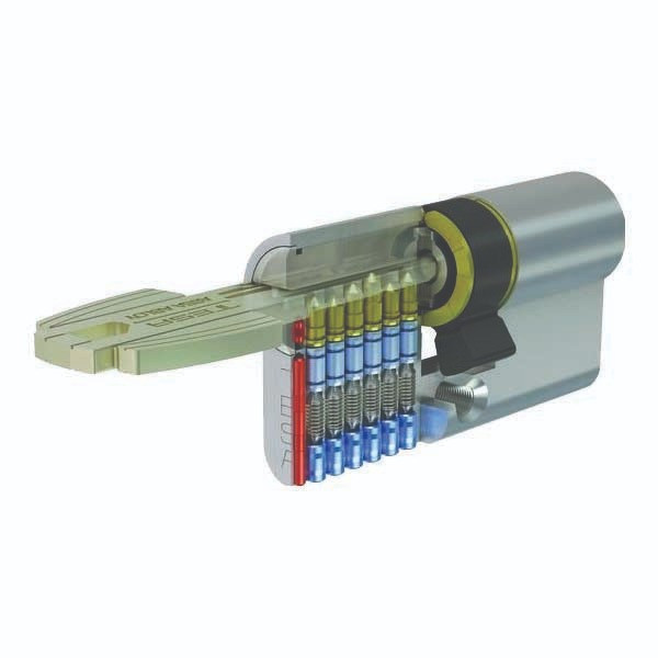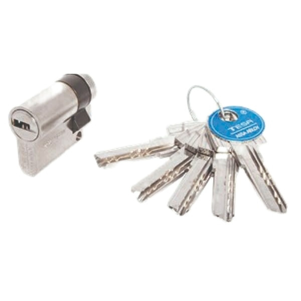 سیلندر امنیتی تمام برنجی با 5 کلید کامپیوتری برنجی با پوشش نیکل مقاوم در حریق دارای استاندارد EN اروپا مقاوم در برابر ضربه و ضد دریل و ضد سرقت در سایز 30 و 40 دارای شش پین فولادی و در هر طرف مجهز به پین فولادی