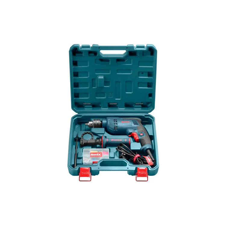 ست کیف ابزار رونیکس مدل RS-0005، مجموعه کاملی از یک دریل چکشی و انواع مته و سر پیچگوشتی های مختلف است. این مجموعه کامل، برای استفاده در مصارف خانگی و صنعتی به کار شما میآیند. این ست کیف ابزار، در یک کیف مقاوم به ضربه BMC به بازار ابزار ایران و جهان عرضه میشود. دریل موجود در ست کیف ابزار 54 تایی رونیکس مدل RH-0005، مجهز به یک موتور 750 واتی بسیار قدرتمند برای بهترین کارایی در سوراخکاری و دریلکاری چکشی است و میتواند با سرعتی بالغ بر 2700 دور در دقیقه کار کند. سهنظام این دریل، آچاری و تمامفلزی بوده و با ظرفیت 13-1.5 میلیمتر کار میکند. مجموعه ابزارآلات و قطعات موجود در این کیت، در صنایع چوبی، فلزی و ساختمانی مورد استفاده قرار میگیرند.
