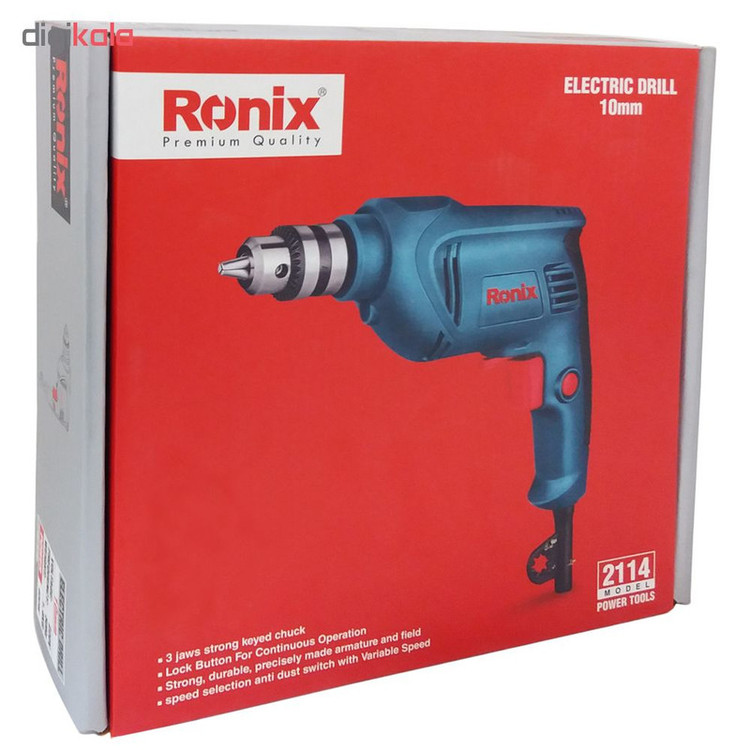 رونیکس یکی از شرکتهایی است که در سالهای اخیر در زمینه تولید ابزارهای ساختمانی پیشرفتهای بسیاری داشته است. یکی از محصولات این شرکت، دریل رونیکس مدل 2114 است. دریل رونیکس مدل 2114 با وزن 1.4 کیلوگرم سبک و کم حجم جهت انجام کلیه کاربریهای نصب در صنایع مختلف فلز و چوب و توان موتور 350 وات است و سرعت این موتور در حالت بیباری بین 0 تا 2700 دور در دقیقه است. این دریل برقی دارای سه نظام آچاری 10 میلیمتر است. از دیگر ویژگیهای دریل رونیکس مدل 2114 میتوان به کلید الکترونیک چپگرد و راستگرد ضد غبار مطابق با استاندارد TUV، آرمیچر و بالشتکهای صنعتی با بالاترین کیفیت سیم پیچی مطابق با استاندارد CE، کلید قفل کن در وضعیت روشن، طراحی جدید و ارگونومیک بدنه جهت سهولت در کاربری اشاره کرد. اگر به دنبال یک دریل باکیفیت هستید، این محصول میتواند گزینه مناسبی برای شما باشد.