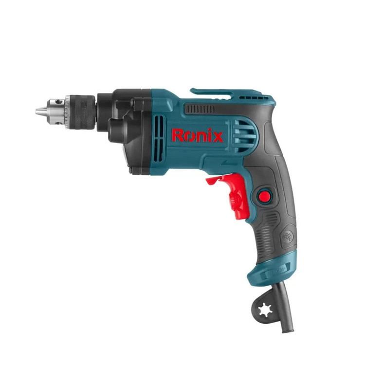 دریل برقی 2116 رونیکس، دارای نیمتنه فلزی است و با موتور پرقدرت 500 وات کار میکند. همچنین، مجهز به سهنظام دوتکه مستحکم، 10 میلیمتری و آچاری است که بر عملکرد دستگاه تاثیرگذار است. این ابزار برقی کاربردی، با برخورداری از اهرم چپگرد/راستگرد میتواند در کنار عملیات دریلکاری به عنوان پیچگوشتی برقی نیز کار کند. کلید اصلی این دریل، ضد غبار و دیمردار بوده و سرعت چرخش مته را تنظیم و کنترل میکند. افزونبراین، قفلکن کلید، دریل را بعد از روشنشدن در حالت روشن نگه میدارد تا بتوانید آن را در مدتزمانی طولانی و بدون نیاز به فشردن دائمی کلید اصلی، روشن نگه دارید.
