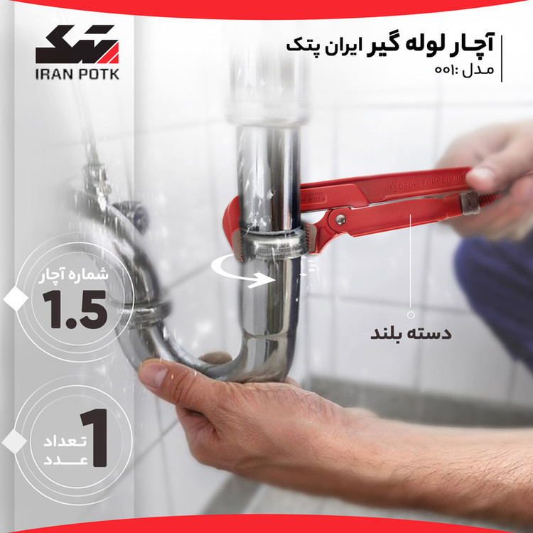 انبرها و آچارها به دلیل نوع طراحی و کاربردی که دارند اهمیت بسیار زیادی داشته و در هر کیف ابزاری یافت میشوند. محصول فوق را میتوان ترکیبی از یک آچار و انبر دانست که برای انجام کارهای سنگین مورد استفاده قرار میگیرد. این آچار با نام آچار لولهگیر شناخته میشود و در کارهای تاسیساتی بیشترین استفاده را دارد. از آنجایی که این محصول تحت فشار بالای کاری قرار دارد شرکت سازنده از آلیاژی سختکاری شده استفاده کرده است. آلیاژ کروم وانادیوم دربرابر خوردگی نیز مقاومت بالایی داشته و همین موضوع موجب طول عمر بالای این ابزار شده است. این محصول دارای فکهایی دندانهدار بوده تا بتواند به شکل بهتری لوله را نگه دارد. این آچار مقاوم و قدرتمند را شرکت ایرانی و شناخته شدهی ایران پتک تولید میکند. این آچار سایز 1.5 اینچی داشته و ابعاد آن 42 × 7 × 2.5 سانتیمتر است.