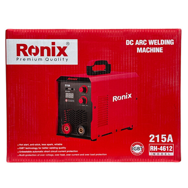 دستگاه جوش اینورتر رونیکس مدل RH-4612 با خروجی 215 آمپر، ابزار قدرتمند و دقیقی برای انجام انواع جوشکاری با الکترودهای تا قطر 5 میلیمتر است. این دستگاه با برد فول بزرگ بریج و قدرتمند، فناوری پیشرفته IGBT و طراحی تمامدیجیتال، علاوه بر بهبود کیفیت جوش و نفوذ بالا، مصرف انرژی را نیز به شکل محسوسی کاهش میدهد. نمایشگر دیجیتال با دقت بالا، به همراه دو ولوم مجزا برای تنظیم جریان و نیروی قوس، امکان تنظیمات سریع و دقیق را فراهم میکند. این دستگاه با بهرهگیری از سیستمهای HOT START ،ARC FORCE و ضد چسبندگی، عملکرد پایدار و قابل اطمینانی را حتی برای کاربران مبتدی ارائه میدهد. این دستگاه اینورتر، قابل استفاده همراه با ژنراتور برق است و به همین دلیل، برای محیطهای فاقد بررق شهری نیز میتوانید از آن استفاده کنید.