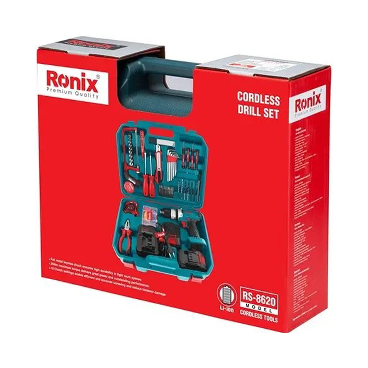 کیت دریل پیچ گوشتی چکشی شارژی رونیکس 20 ولت مدل RS-8620 دو باتری